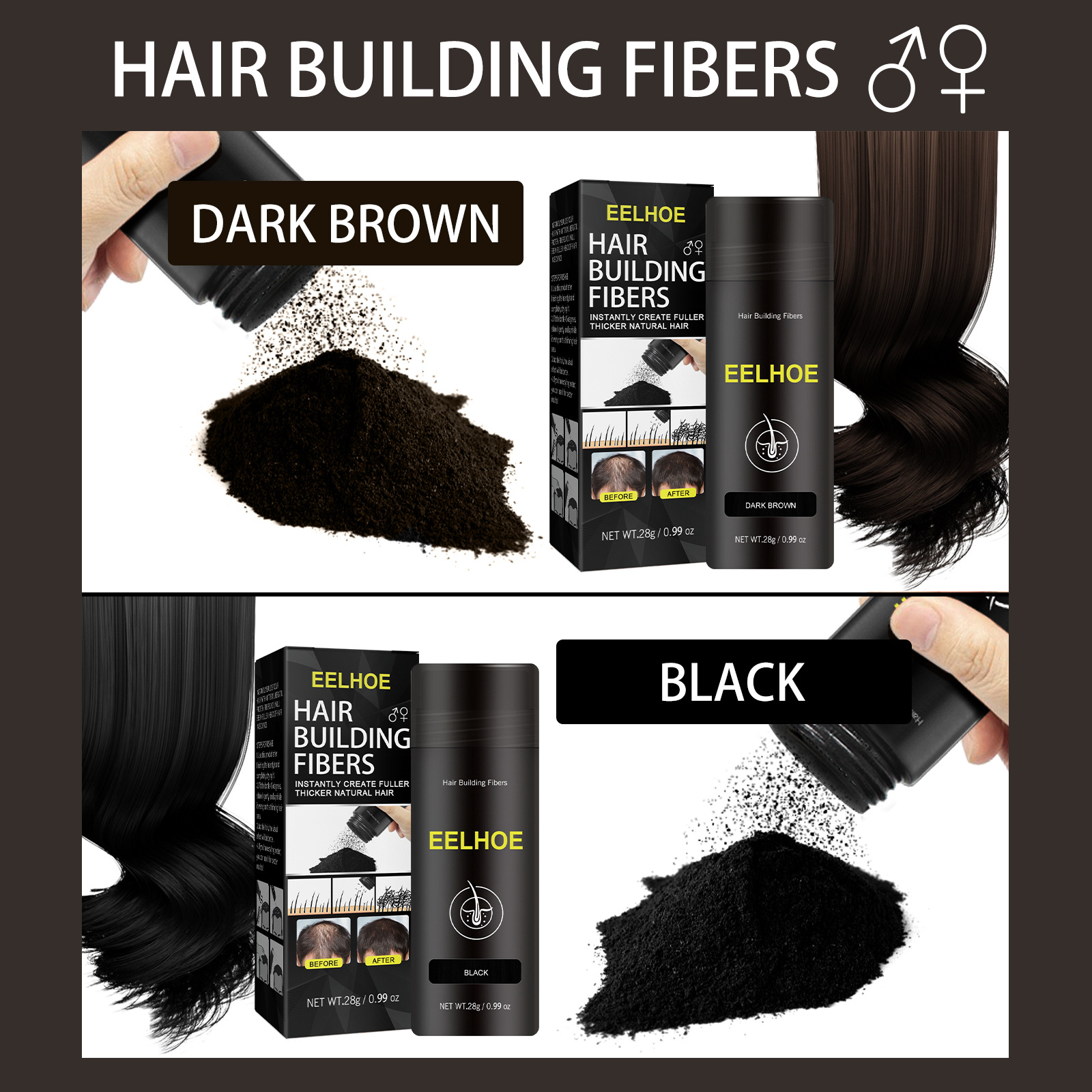 Eelhoe髪繊維パウダー髪ライン希少充填パウダー髪トップカバーまばらで豊かなふわふわパウダー