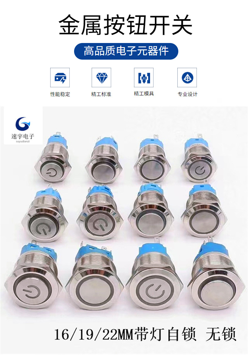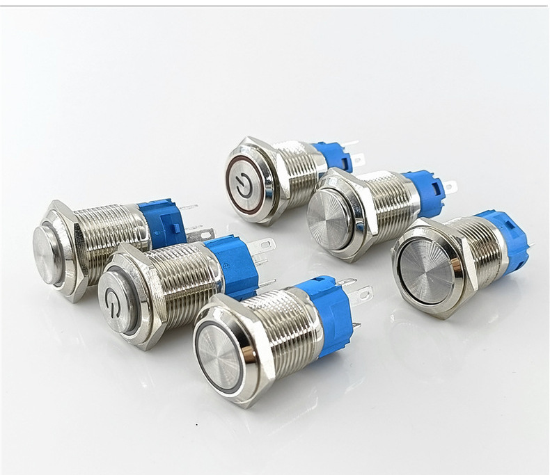金属ボタンスイッチ 12 16 19 22 ミリメートルセルフロックセルフリセットライト付き丸型ポイントモーション電源防水スイッチ