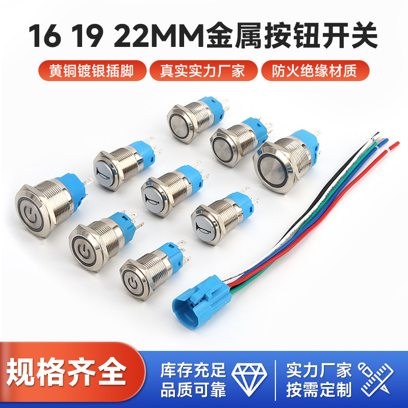 防水金属押しボタンスイッチ16mm/19mm/22mmランプ付きセルフロック/ロックなしセルフリセット押しボタンスイッチ