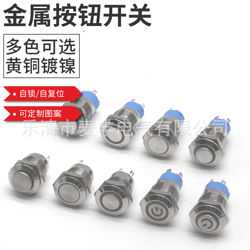 金属按钮开关12mm自复位自锁圆形带灯自锁启动电源按键常开12V24V