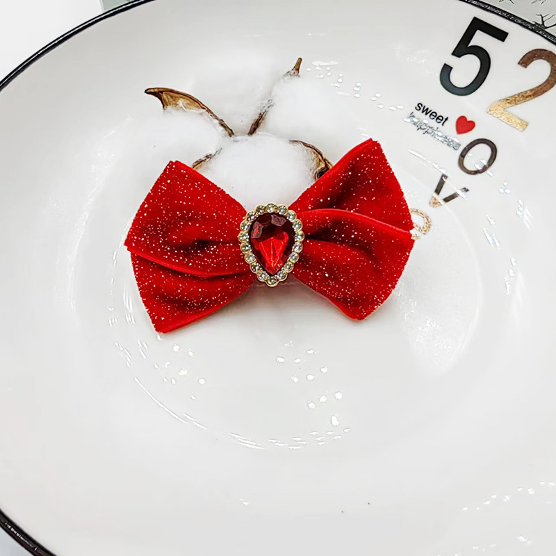 2023年の赤い子供の大きい蝶結びの頭飾りの女の子の髪飾りの新年のベルベットの赤ちゃんの王女の新年のヘアピン