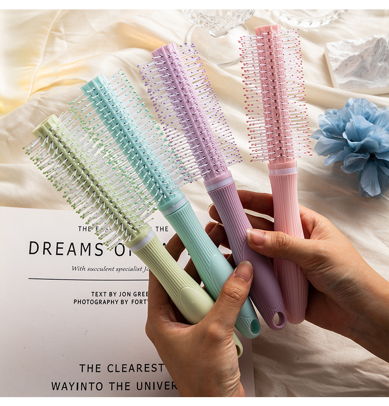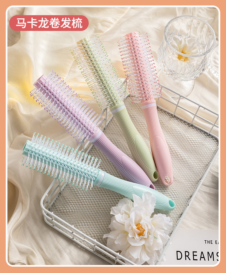 マカロン色滑り止めハンドル円筒内バックルカール櫛学生寮櫛高頭頂ふわふわ形櫛