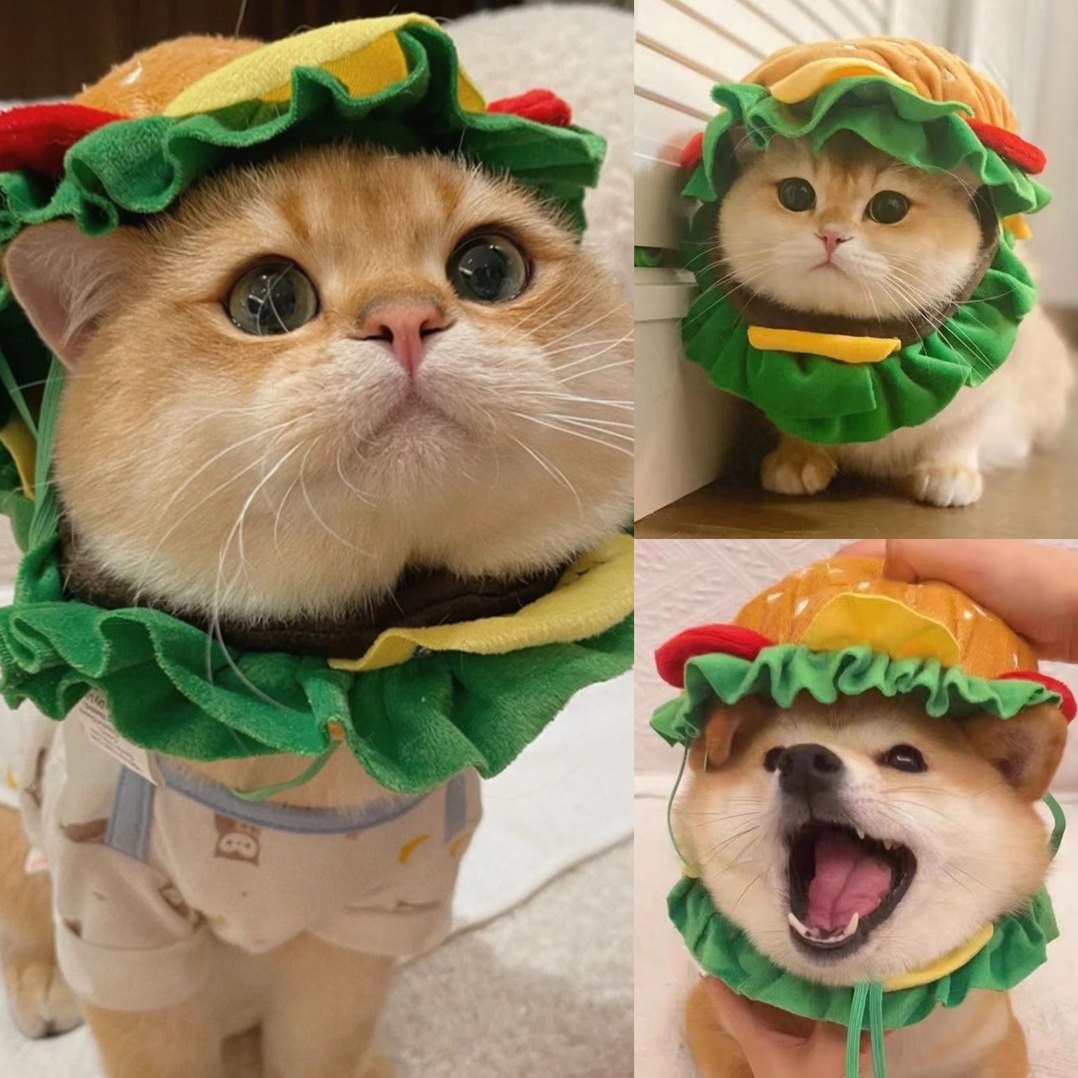 猫咪头套狗狗宠物汉堡帽子可爱搞怪变装帽卡通柴犬装扮金渐层拍照