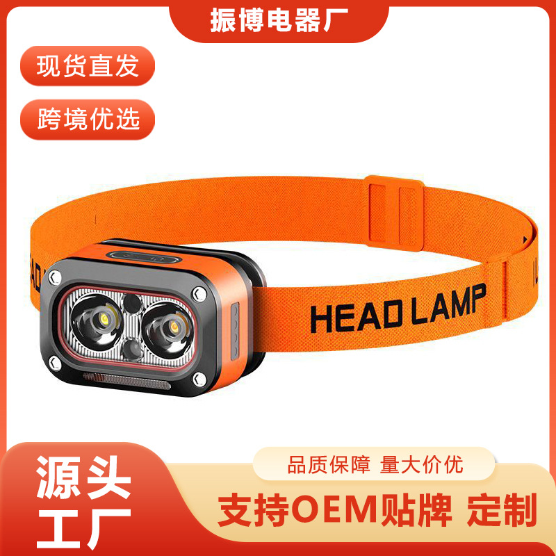 跨境强光感应头灯LED防水充电头戴式钓鱼灯矿灯户外双光源露营灯
