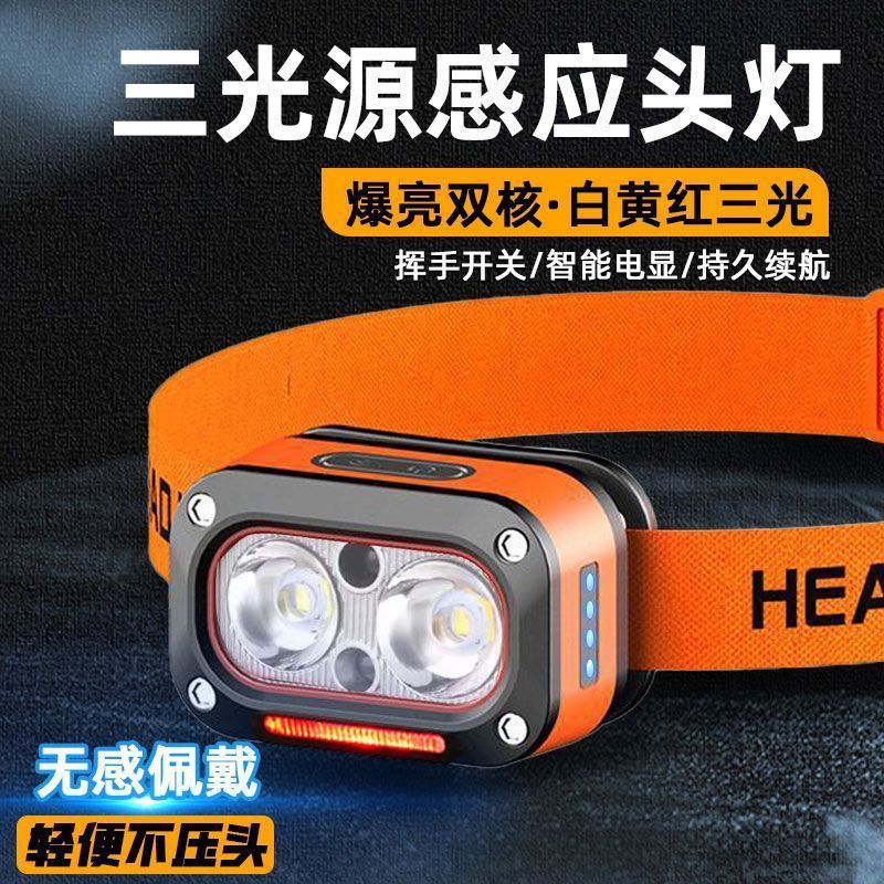 国境を越えた新型led三光源感応ヘッドライト屋外夜騎乗釣り多機能type-c充電小ヘッドライト