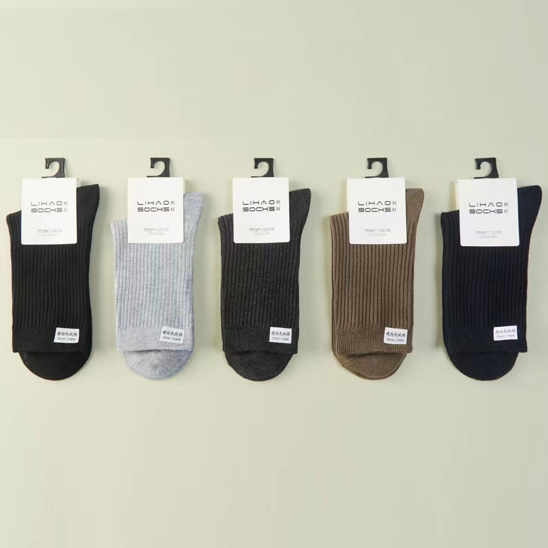 男性用靴下秋冬中筒綿靴下双針綿質男性防臭靴下純色スポーツ靴下卸売り独立包装