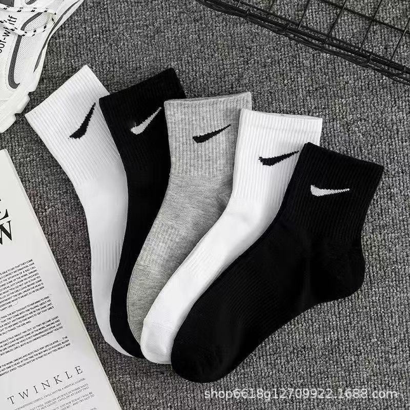 外贸苏万耐斯特袜子中筒百搭黑白男女运动袜纯色勾勾涤棉袜子包邮