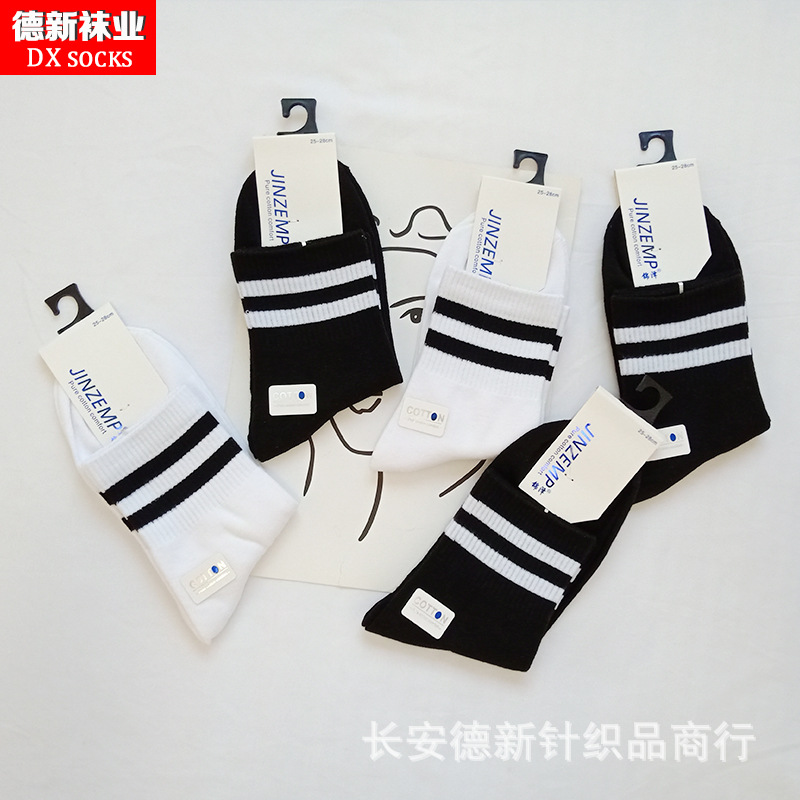 白い靴下の男性のタイプの四季のタイプの中筒の靴下の純色の白黒の長い筒のスポーツの靴下の綿の靴下のメーカーは卸売りします。