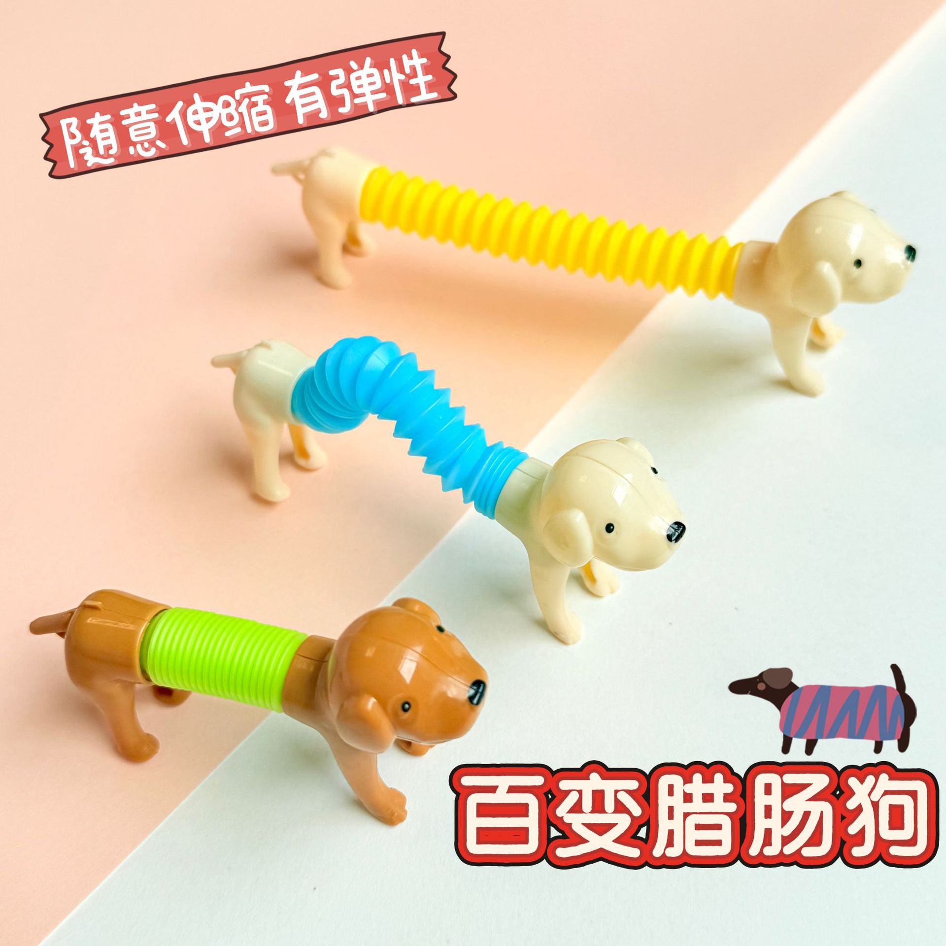 可爱百变伸缩小狗拉伸管减压玩具桌面摆件亲子益智幼儿园儿童礼品