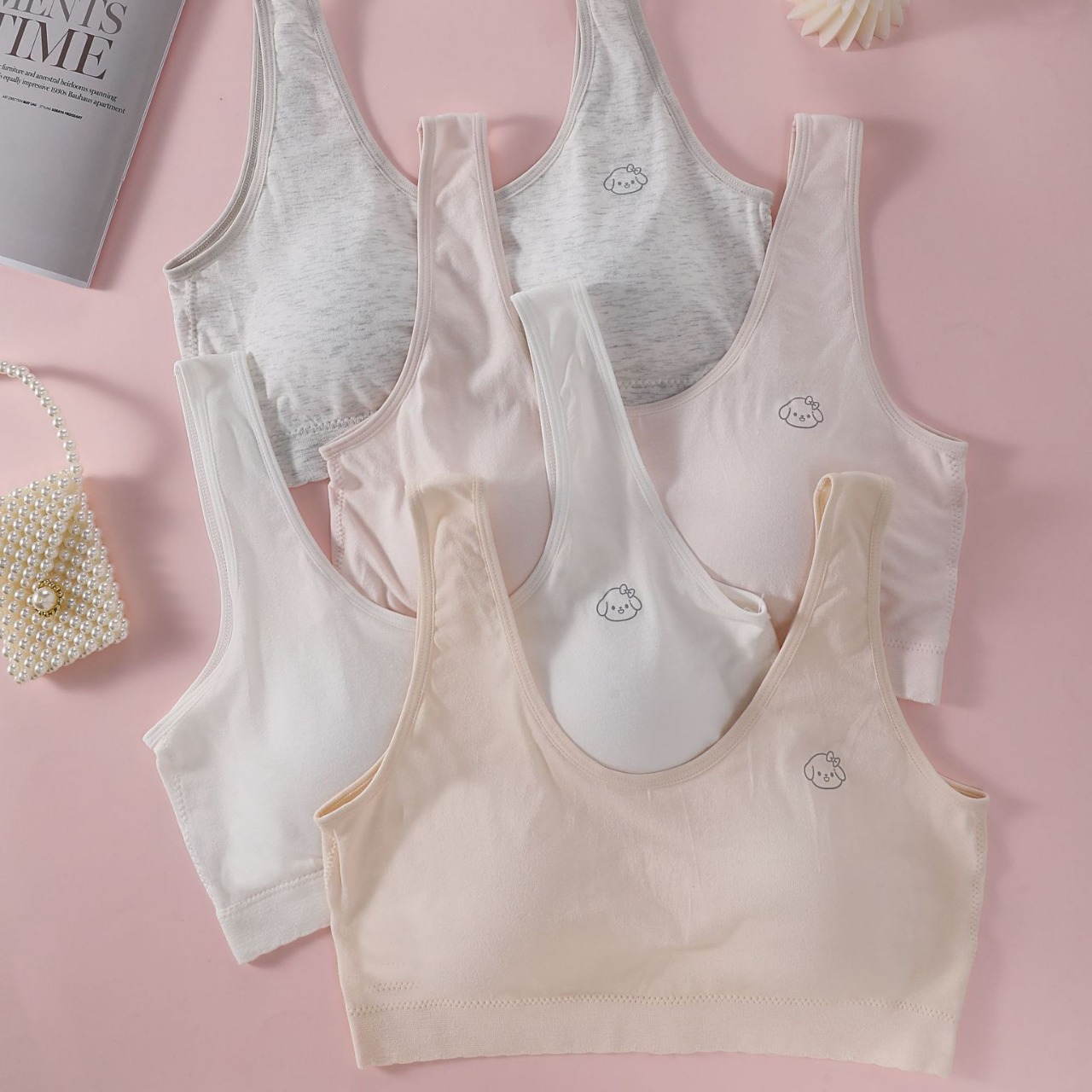 発育期の少女のスチールリングなしの固定カップラテックス下着はシームレスに色の広い肩に衝突します。