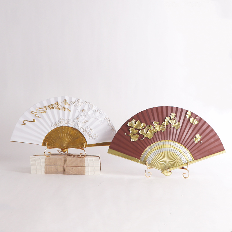 新中式书房禅意摆件书柜博古架立体浮雕扇子工艺品样板间软装饰品