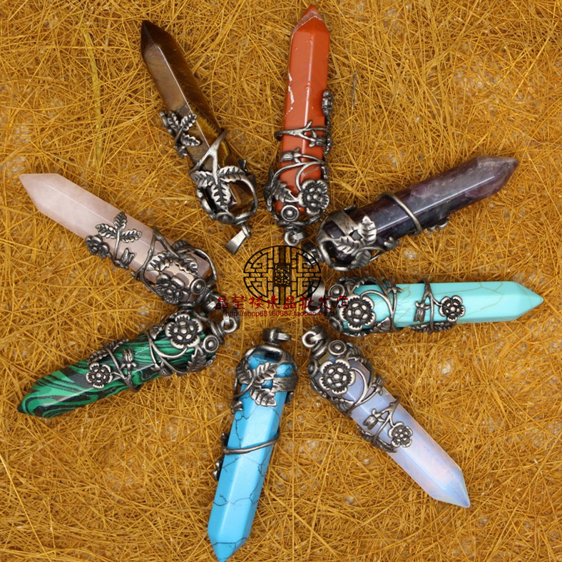 クロスボーダー水晶アクセサリー卸売天然石不定性水晶エッセンシャルオイルボトル青紋石切断面ペンダント