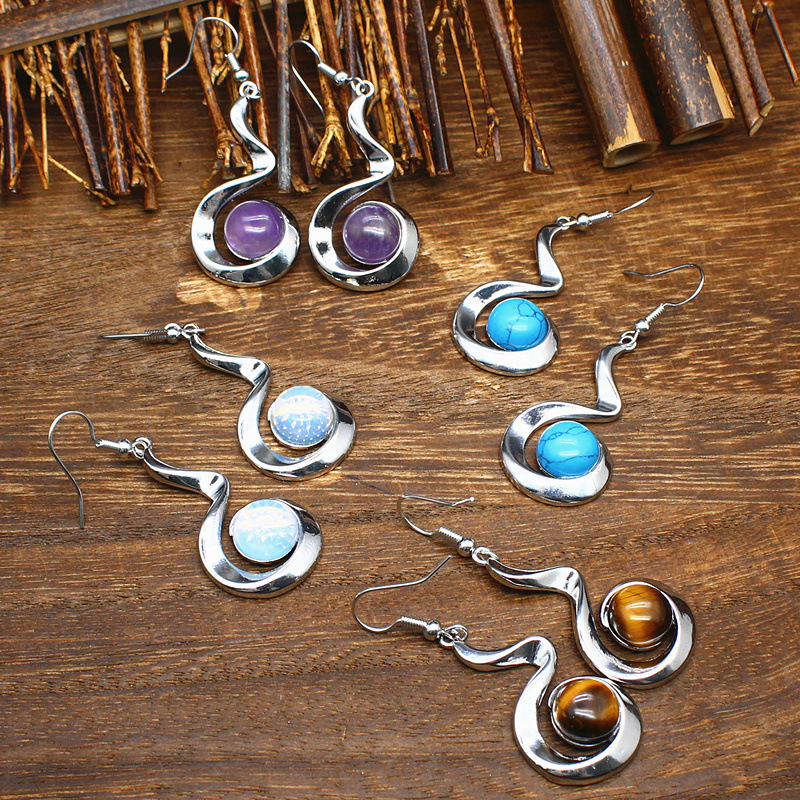 国境を越えた新製品水晶ジュエリー卸売り天然石個性イヤリング火山石金沙石耳飾りイヤリング