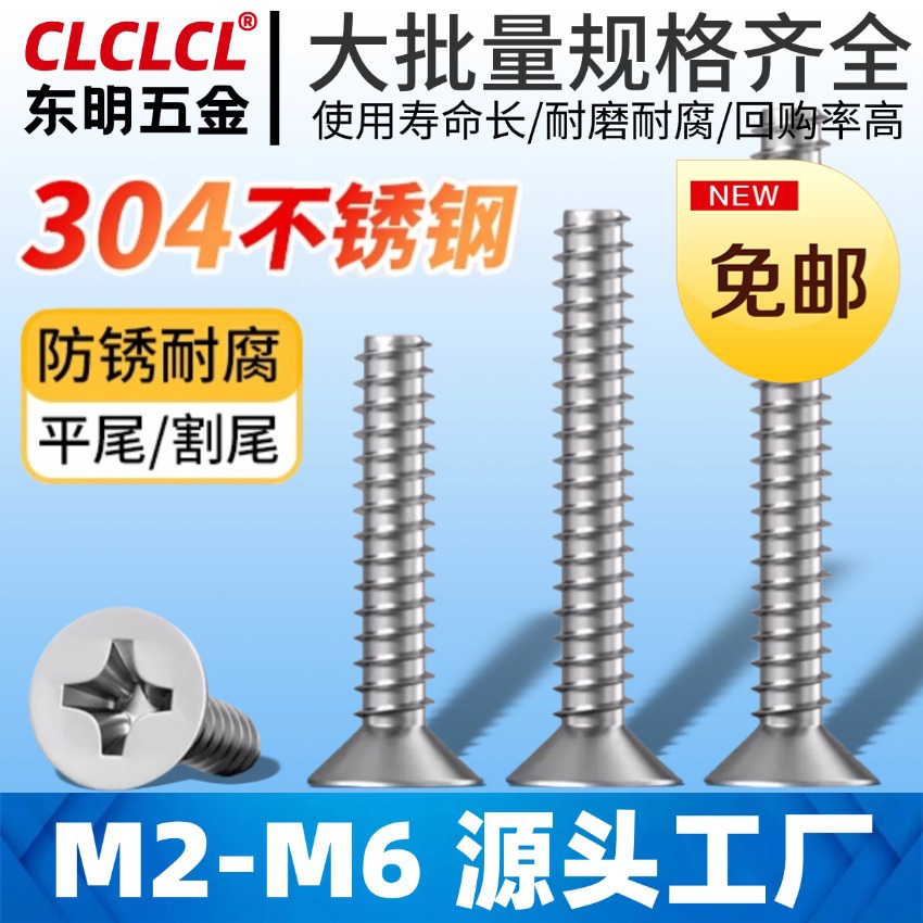 304ステンレス十字平頭タッピングスクリュー沈頭平尾KB小ねじM2/M2.3/M2.6/M3M4