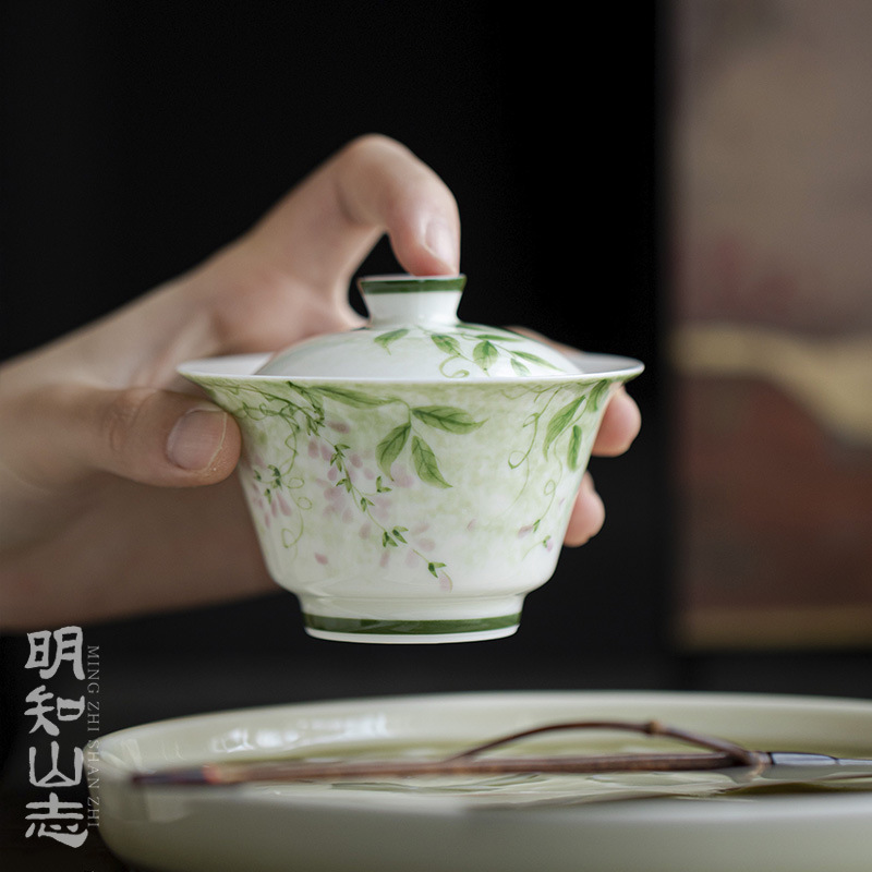 明知山志果青青風鈴華初蓋碗手描き小清新陶磁器蓋碗玉泥家庭用お茶碗