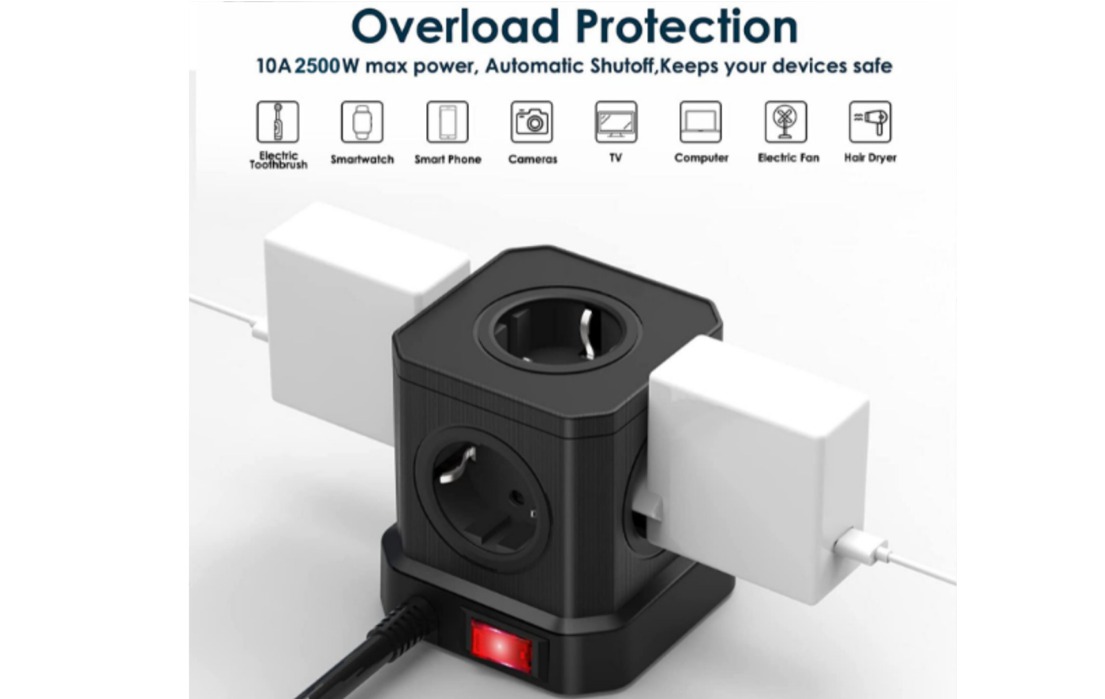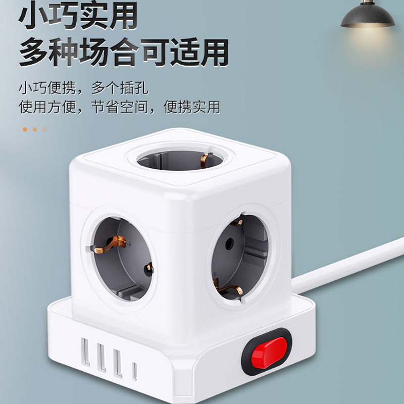 欧規ルービックキューブコンセント多機能USBベーススイッチ付き家庭用縦型タワー型GSソケット欧標変換器