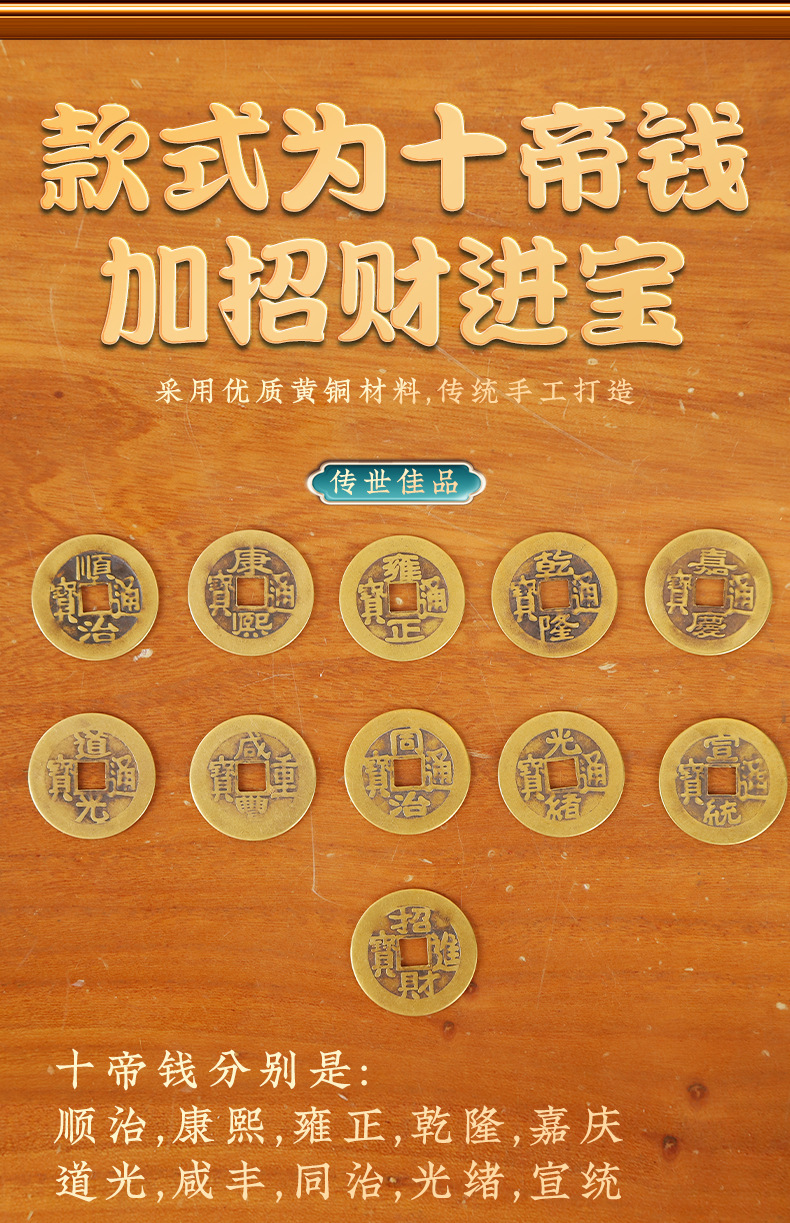 純銅風水五帝銭十帝銭康熙乾隆順治通宝招財平安圧しきい値模造品銅銭