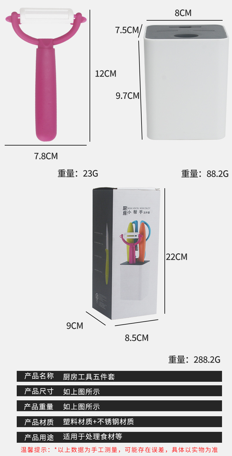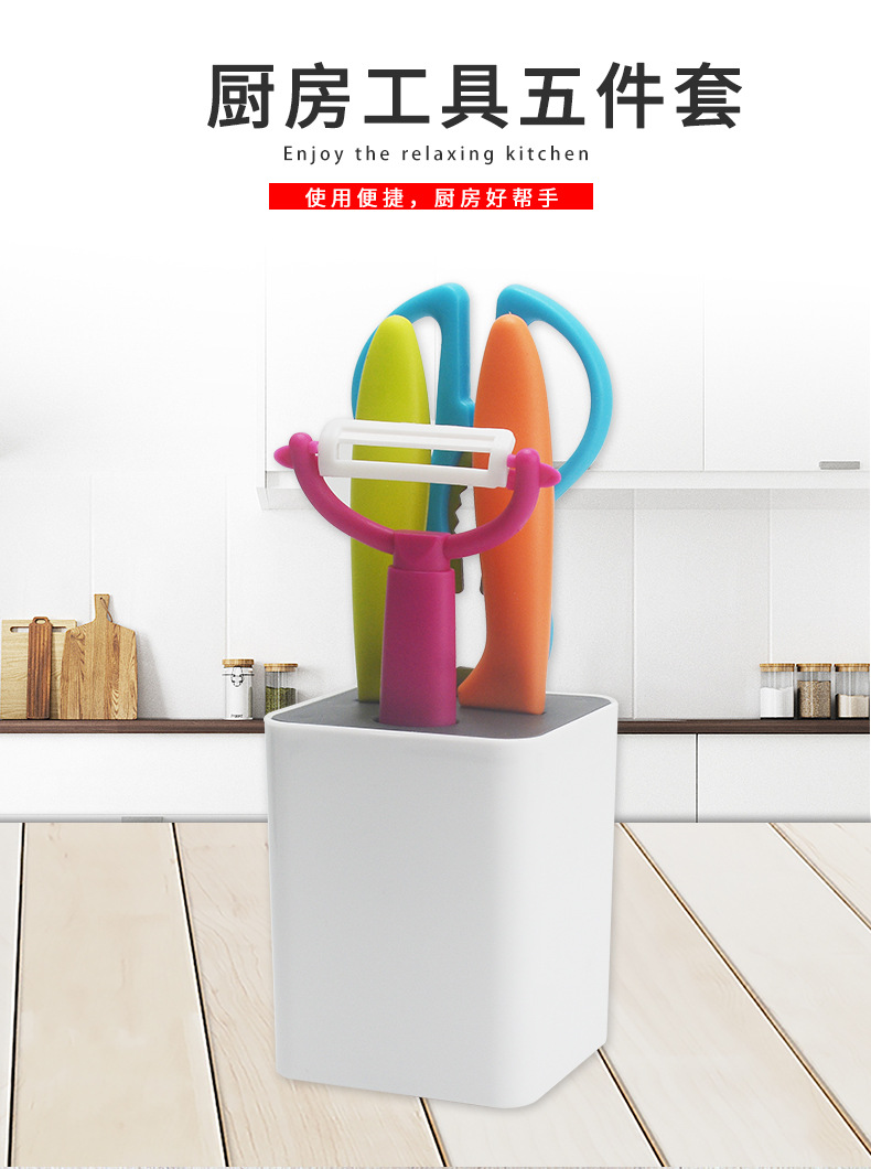 キッチンガジェット五点セット皮むきフルーツナイフセット収納座付き瓜削り補助食はさみ実用小道具