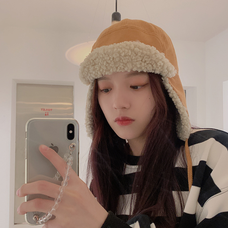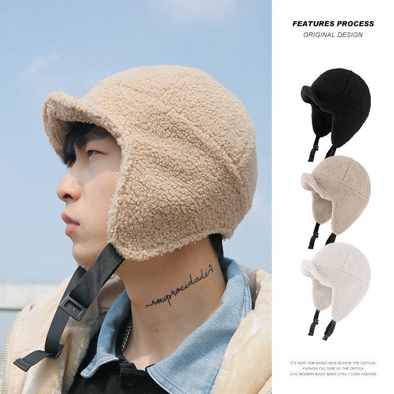 秋冬帽子ins羊小毛ベルベット耳保護帽子男女保温スキー屋外飛行スキー雷鋒帽