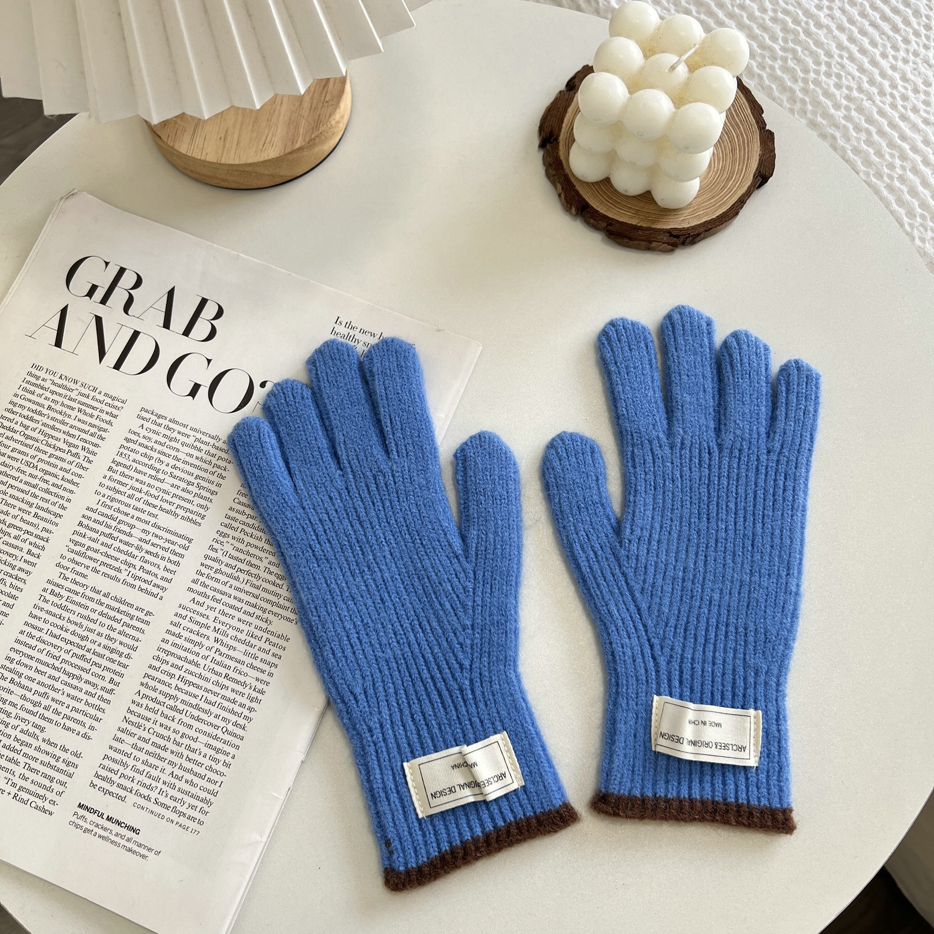 新款纯色针织手套学生可爱韩国女保暖可触屏露二指分指骑车冬季