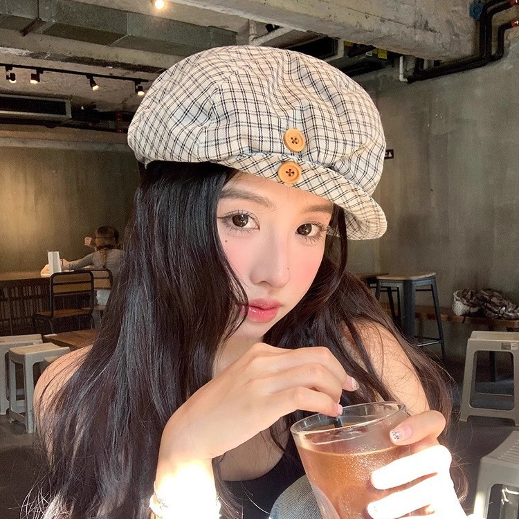 2025 新チェック柄カットオフ八角形帽子女性の画家の帽子カジュアルアヒル舌キャスケット帽子チェック柄ベレー帽春と夏
