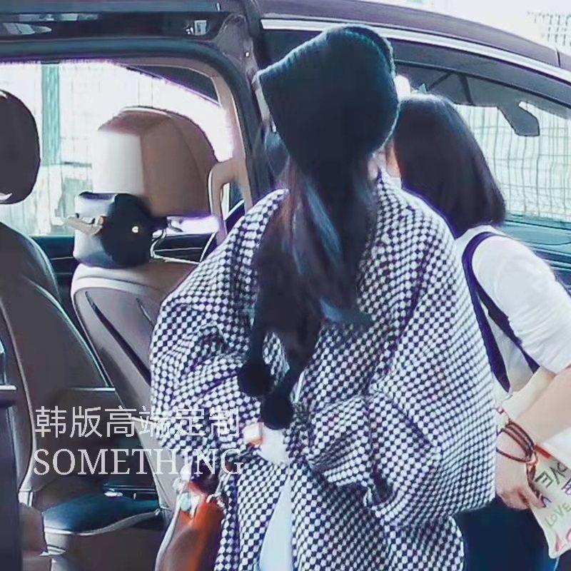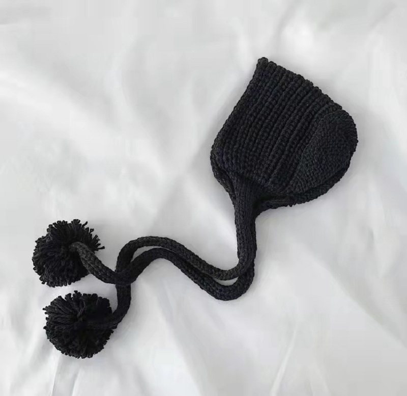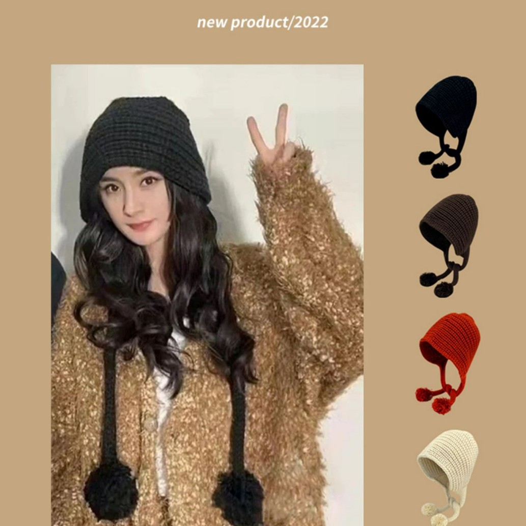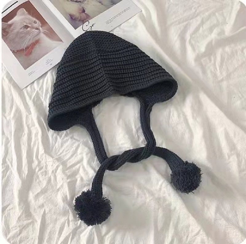 楊冪同モデルの黒い毛糸帽子の子供と秋冬の保温耳保護学生の百合ネットの長いお下げのニット帽子のファッション