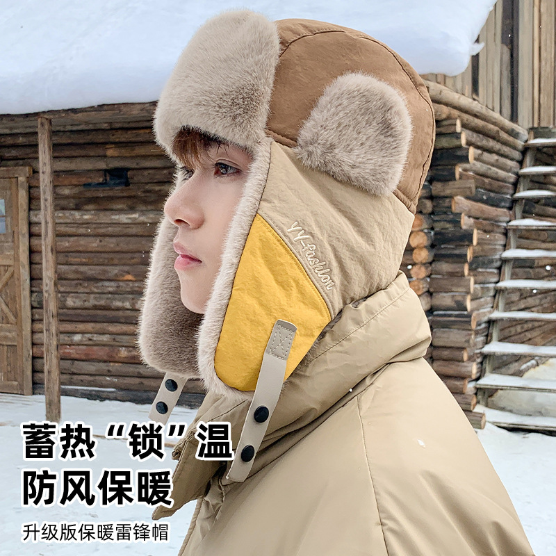 帽子男2024冬のベルベットは耳の帽子を厚くして屋外で保温神器東北防寒雷鋒帽潮に乗る