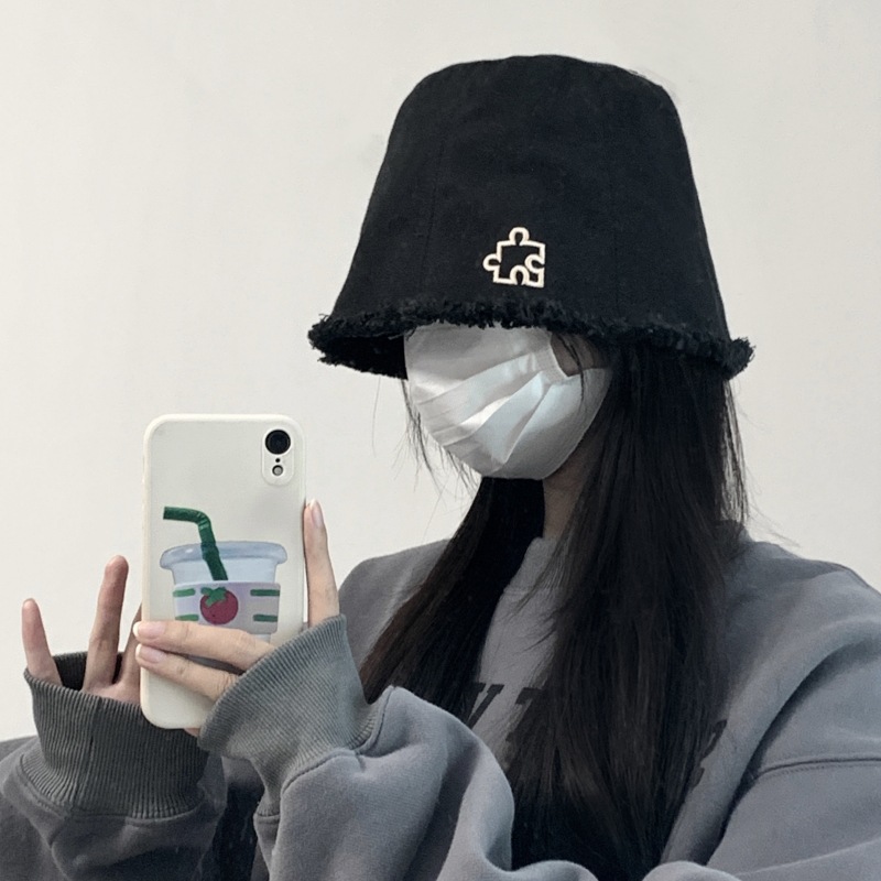 アルファベットの漁師の帽子の女性の春の夏の黒色は日本の大きい頭の周囲のバケツの帽子の韓国版の顔を見せます。