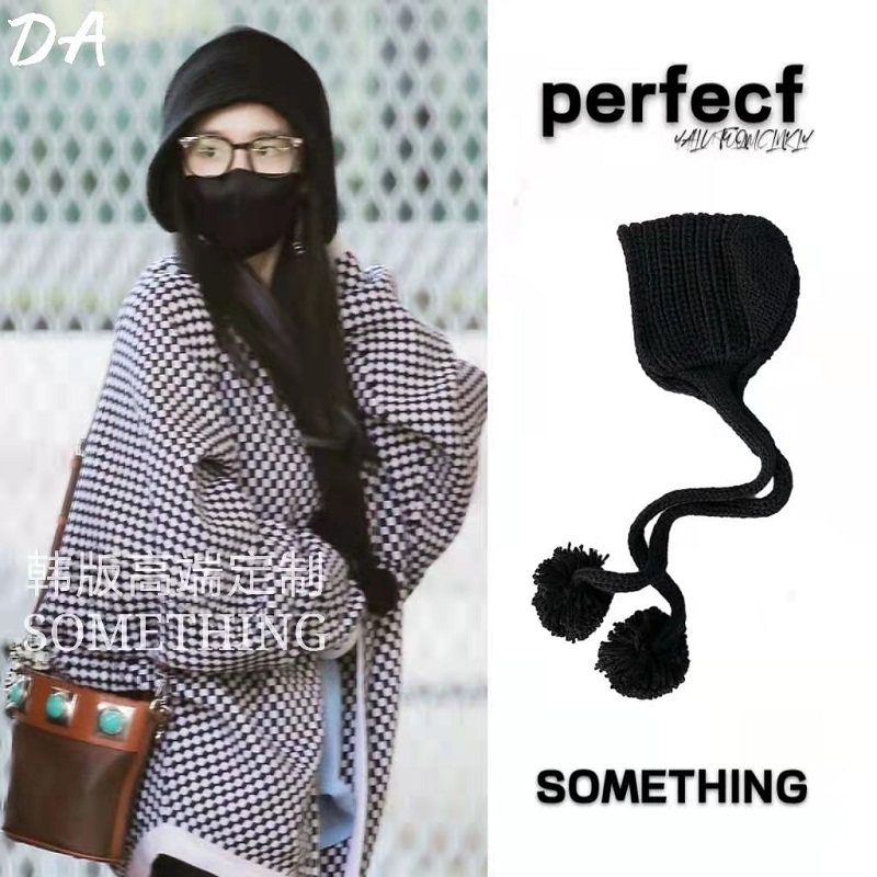 杨幂同款黑色毛线帽子女秋冬保暖护耳学生百搭网红长辫子针织帽潮