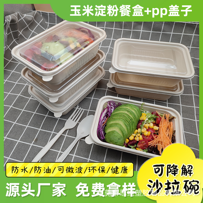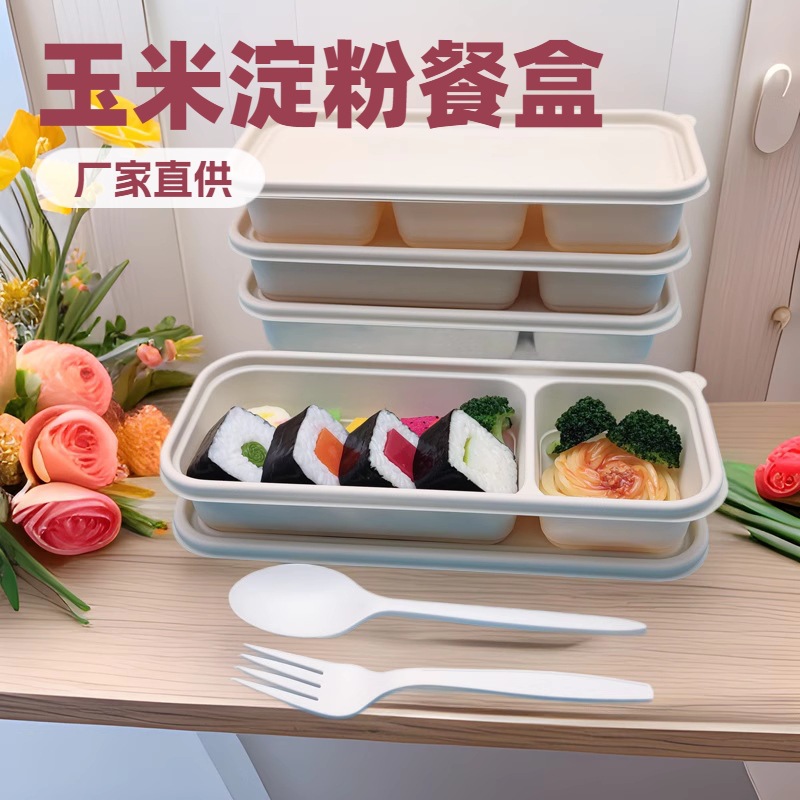 思純使い捨て弁当箱角型多格トウモロコシ澱粉基ファストフード包装箱環境保護分解可能弁当箱