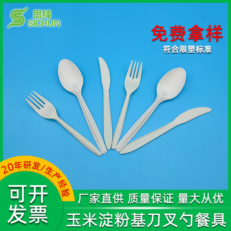 思純は分解性の使い捨てのトウモロコシのデンプンの刀のフォークのスプーンの環境保護の食器のケーキの食事の皿の外に出して包装して高温になります。