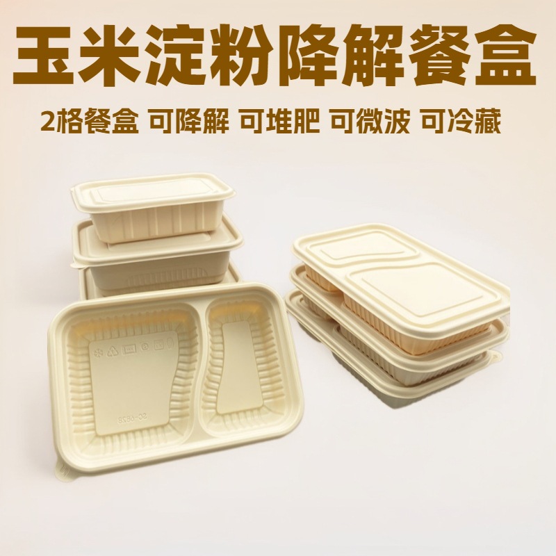 思純使い捨て分解可能トウモロコシ澱粉環境保護ランチボックスの出前梱包2格ランチボックスの加工をサポートする