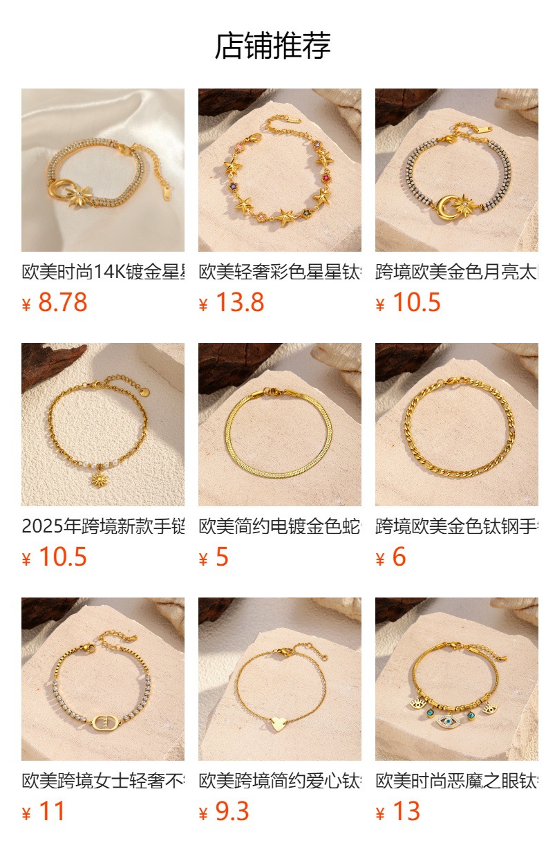 跨境欧美金色月亮太阳造型手链女复古轻奢时尚手饰钛钢饰品批发