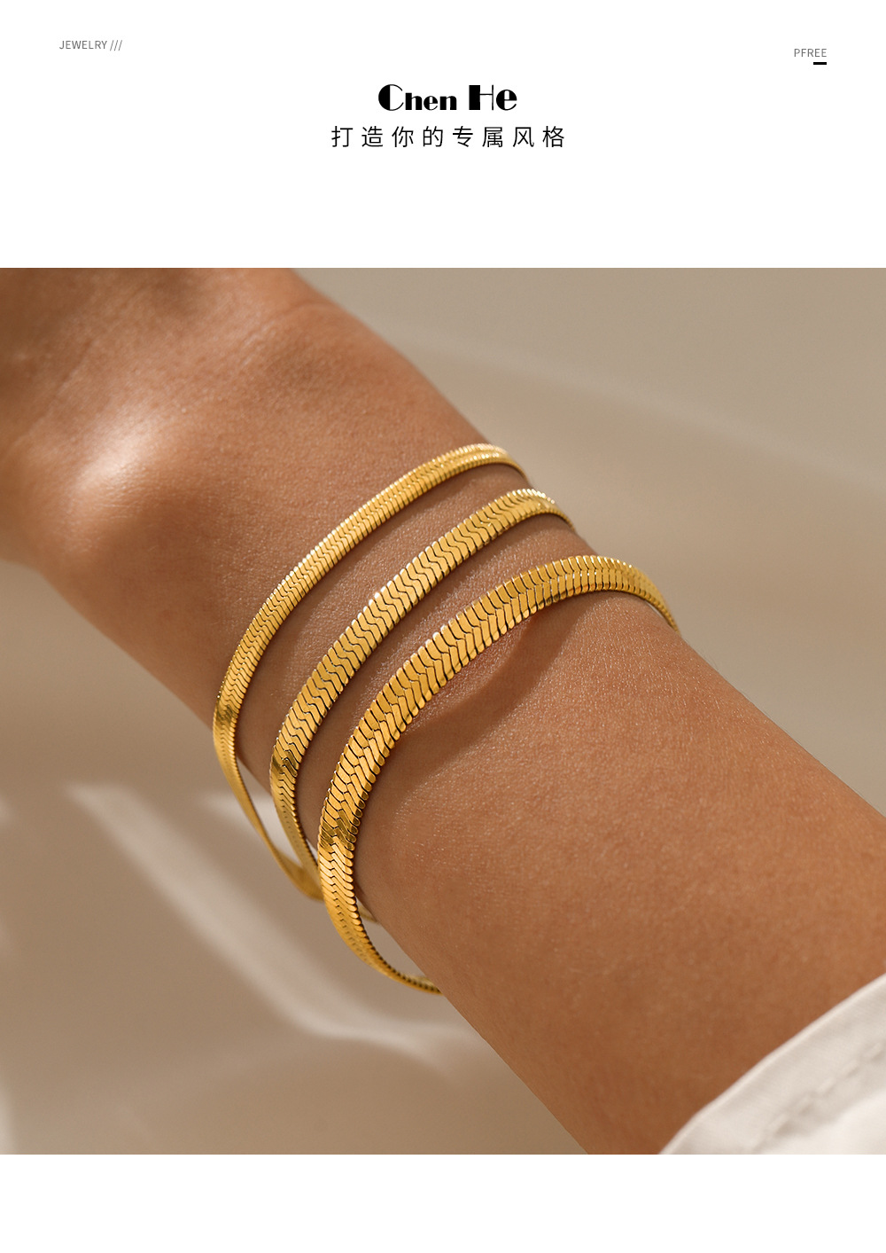 eManco ステンレススチール製スネークボーンチェーン シンプルブレスレット レディース 細身 多用途 フラットスネークチェーンブレスレット ins カップルブレスレット