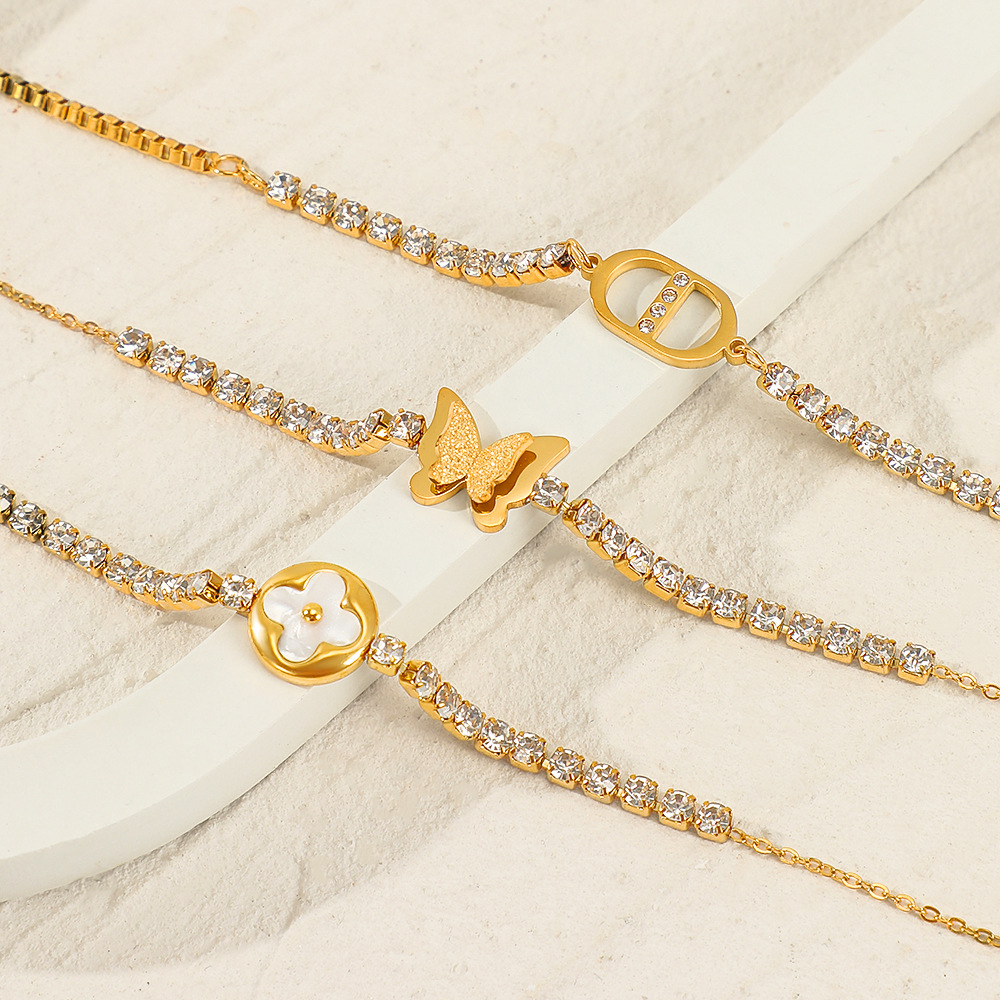 欧米の18k金のダイヤモンドの蝶の四つ葉のクローバーのステンレスのブレスレットの女性のinsの風は簡単に人気があります。