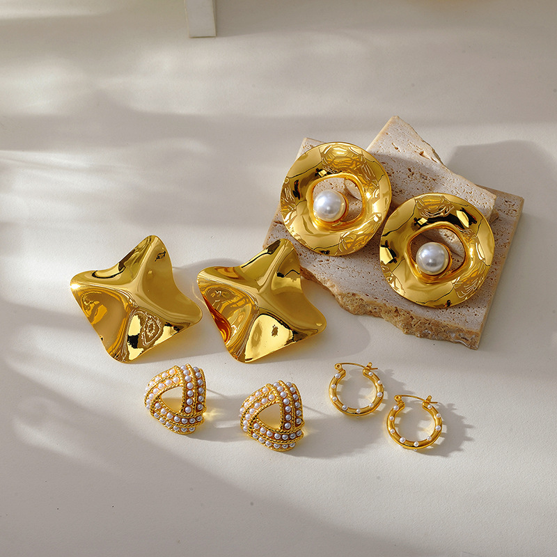 INS風クロスボーダー新型ステンレスメッキ18k金イヤリング幾何凹凸不規則個性誇張大ピアス女