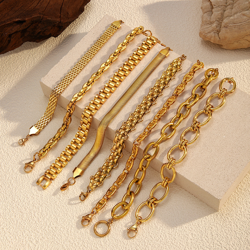 欧米のファッションの潮流のステンレスのブレスレットの真金の電気めっきの滑らかな質感のチタン鋼のスキューバチェーンの女性の装飾品の卸売り