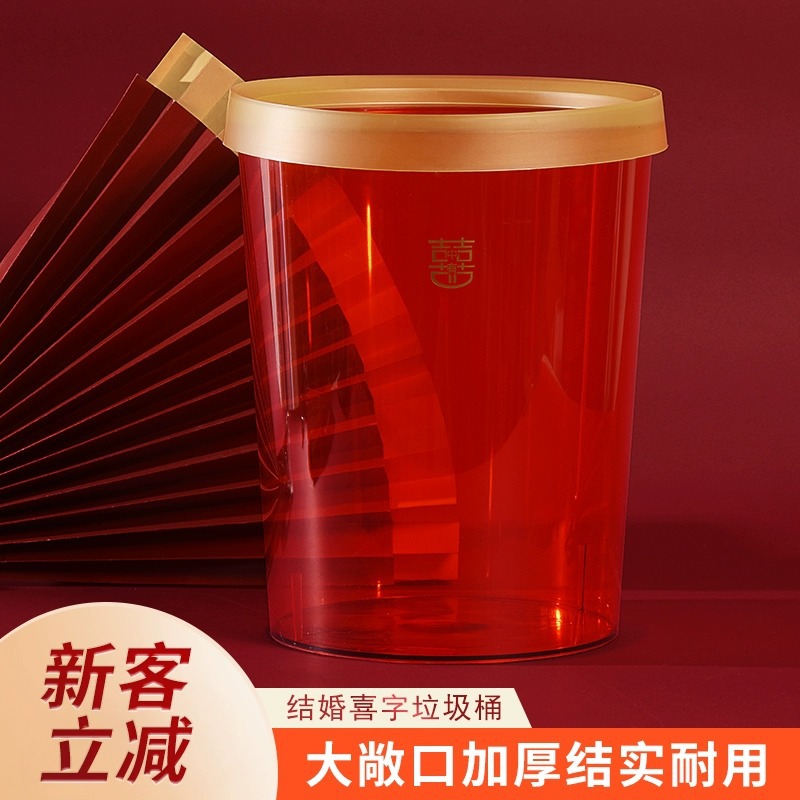 結婚ゴミ箱赤い家庭用キッチン結婚式客間装飾喜字子孫桶結婚室大サイズプラスチック紙かご