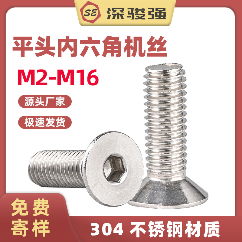 304ステンレス平頭六角穴付きねじ皿頭六角穴付きボルト卸売りねじM2M2.5M3M4-M16