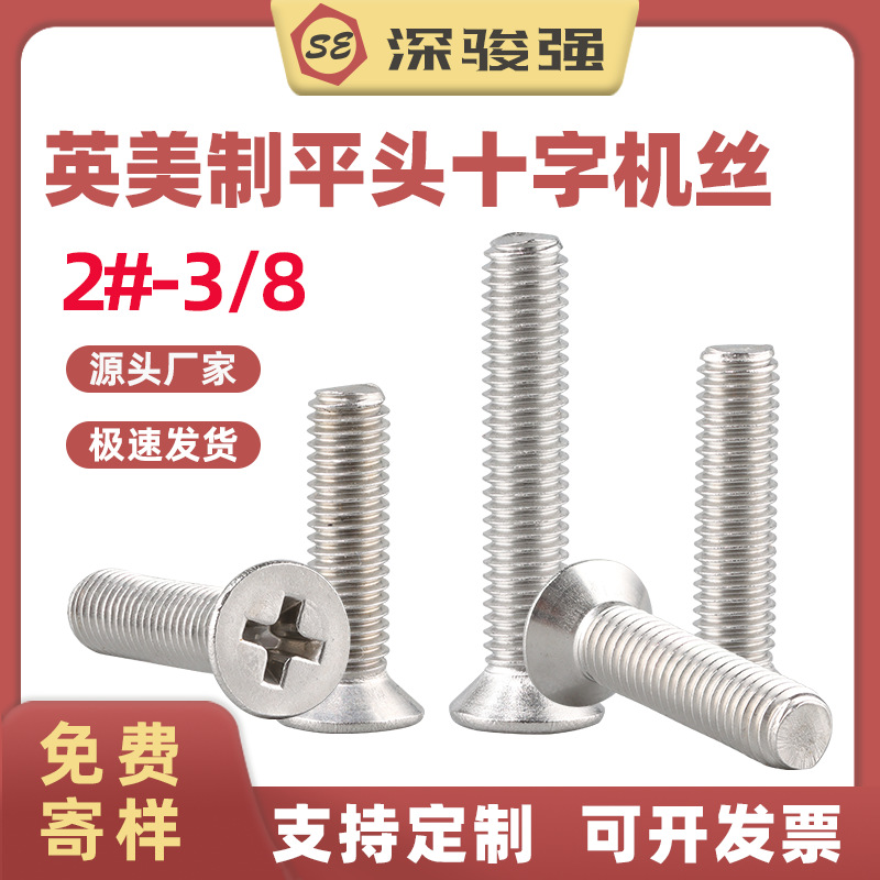 英美製304ステンレス平頭十字ねじ美標英製太歯細歯皿ねじ2 #-3/8