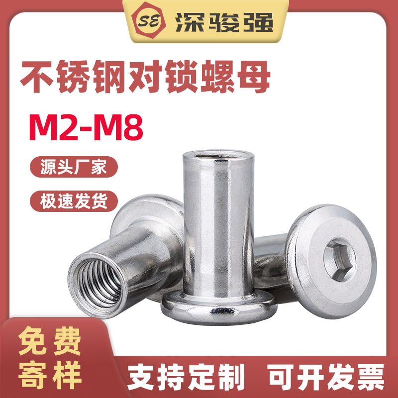 304ステンレスクランプナット平頭斜辺家具内六角対錠ナット突合せナットm4 m 5m 6m 8