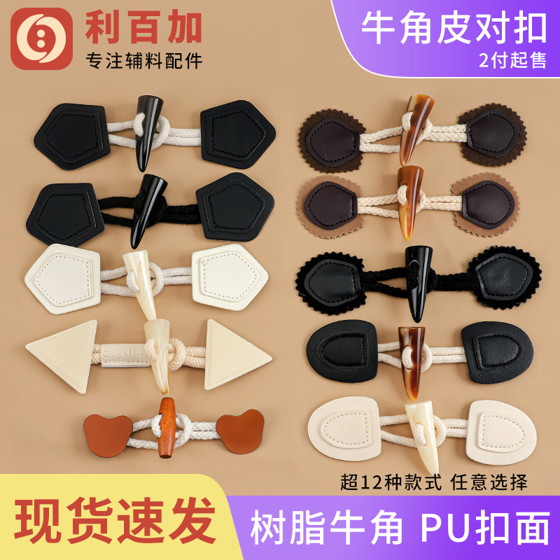 アクリルホーン、半円形レザーバックル、ウールコート、ウインドブレーカー、防風キルトアクセサリーバックル、レザーホーンバックル