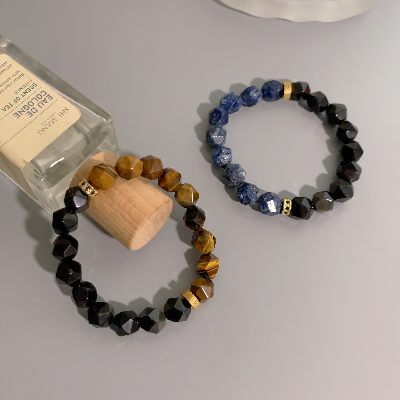 青紋瑪瑙石手串男ファッションシンプル百合アクセサリー小衆高級感ひし形カップルブレスレット