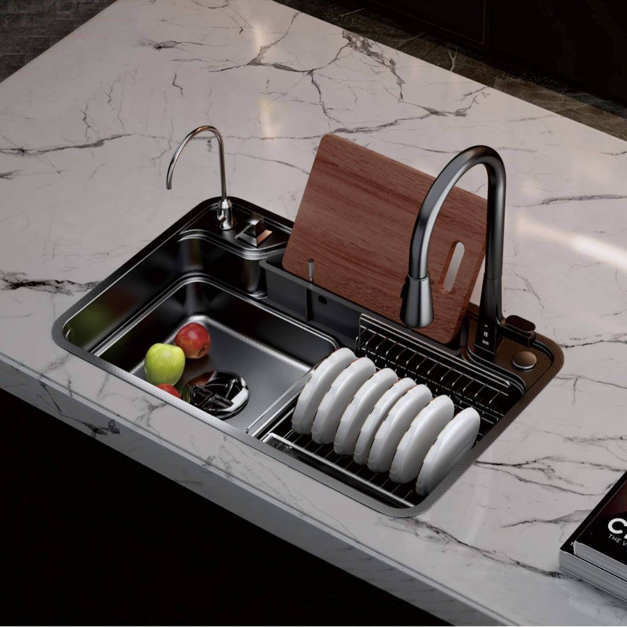304ステンレスシンク大単槽厨房野菜洗浄盆黒カウンターシンクステンレス野菜洗浄盆一体キャビネット