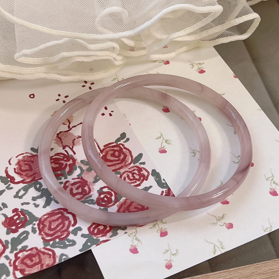 一步一响玻璃仿玉叮当手镯干枯玫瑰古风配饰禁步小红书闺蜜