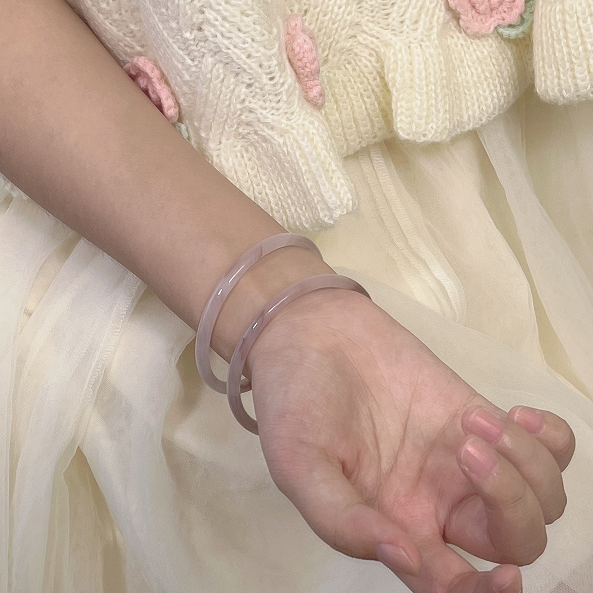 女性用の新しい中国風のブレスレット、クールなスタイル、ハイエンドのジングルブレスレット、細い丸いバー、白いハンドアクセサリー、中国のバレンタインデーのギフト