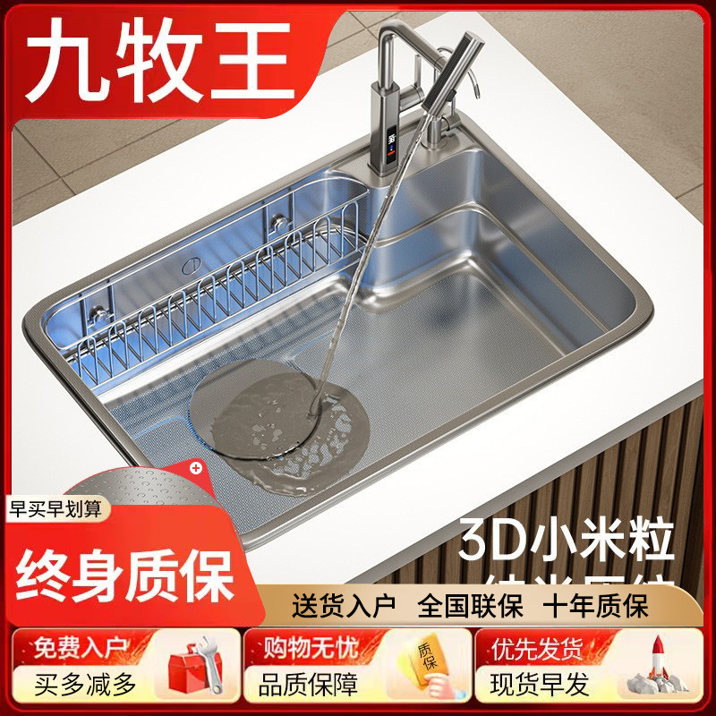 九牧王日式不锈钢大单槽多功能厨房水槽洗菜盆家用洗碗池手工台上