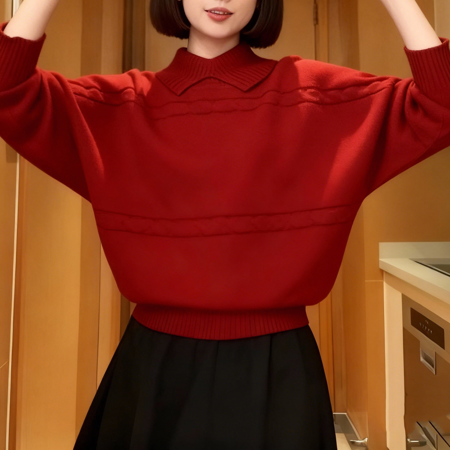 法式复古红色翻领麻花针织衫女秋冬新款气质长袖宽松显瘦毛衣上衣