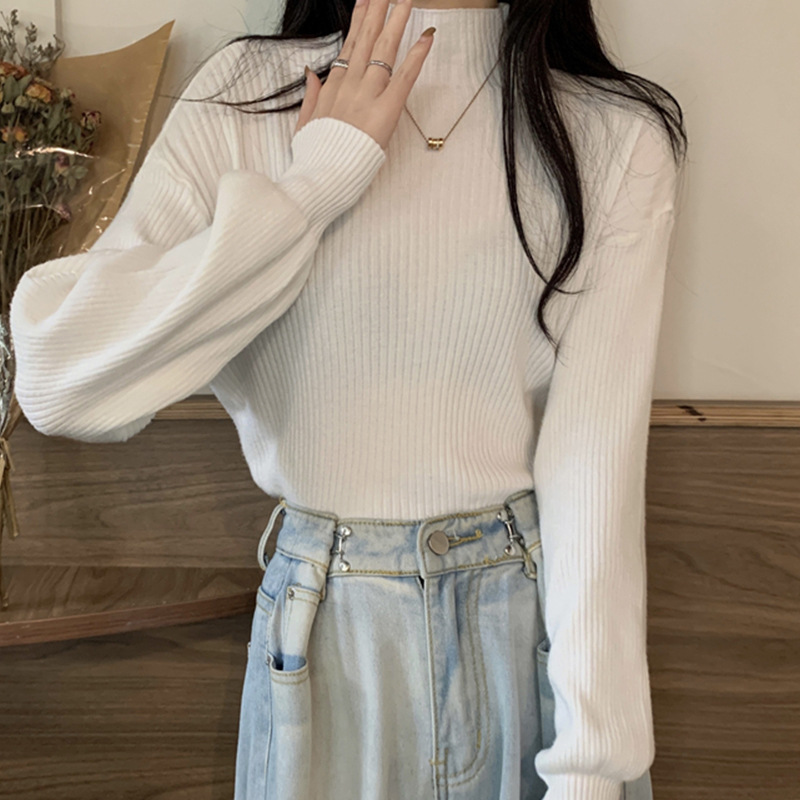 セーターの女性の秋冬の中に半高襟の長袖の底のシャツを掛けます。