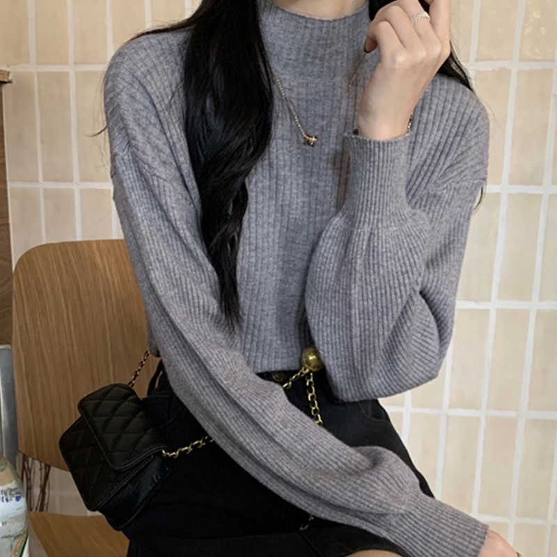 半高襟ニットセーター女性2023秋冬新韓国版修身が痩せているシャツに合わせてファッション上着を着ている女性